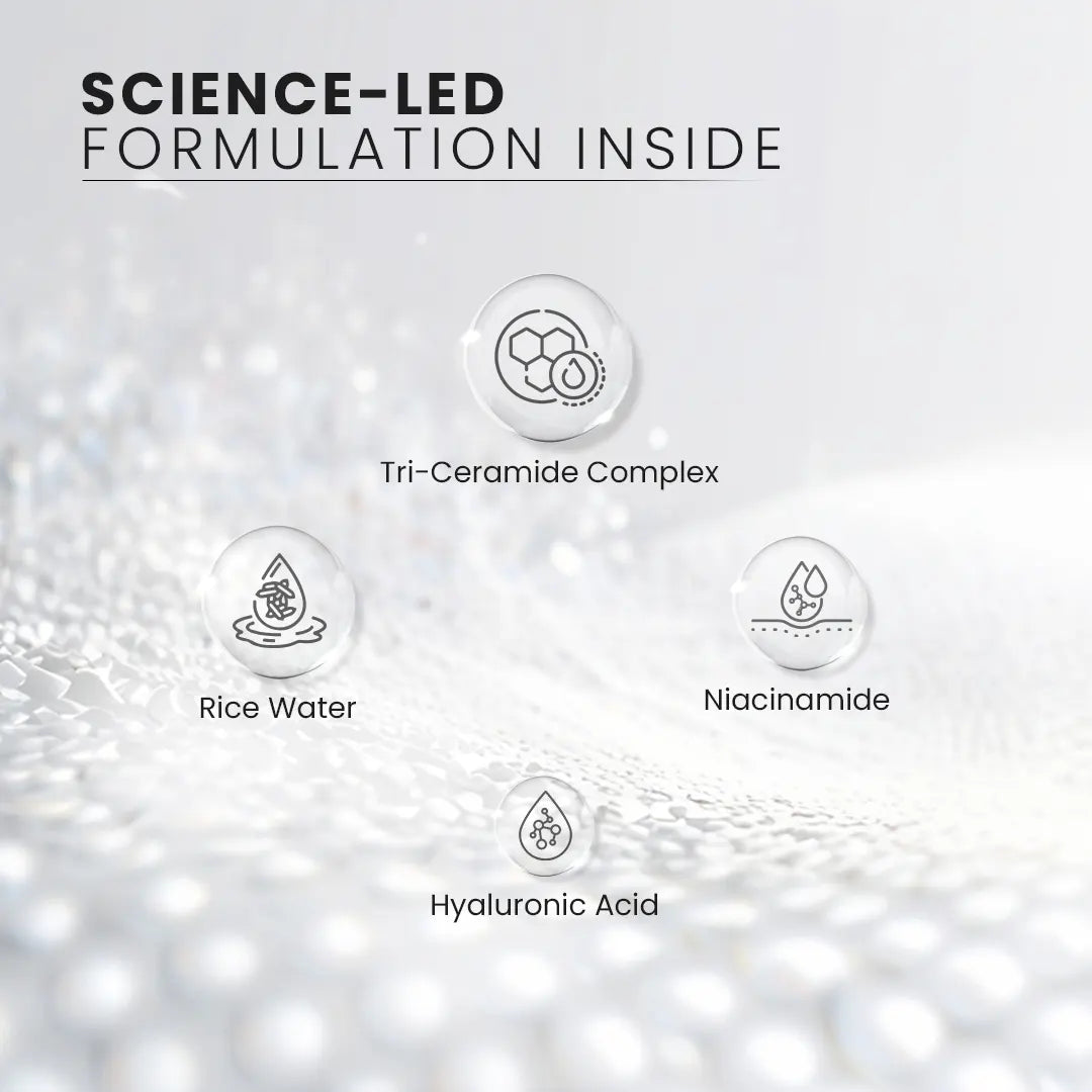 A non-foaming ceramide face wash enriched with niacinamide, fermented rice water, hyaluronic acid, and a tri-ceramide complex. It cleans without disrupting your natural moisture barrier.